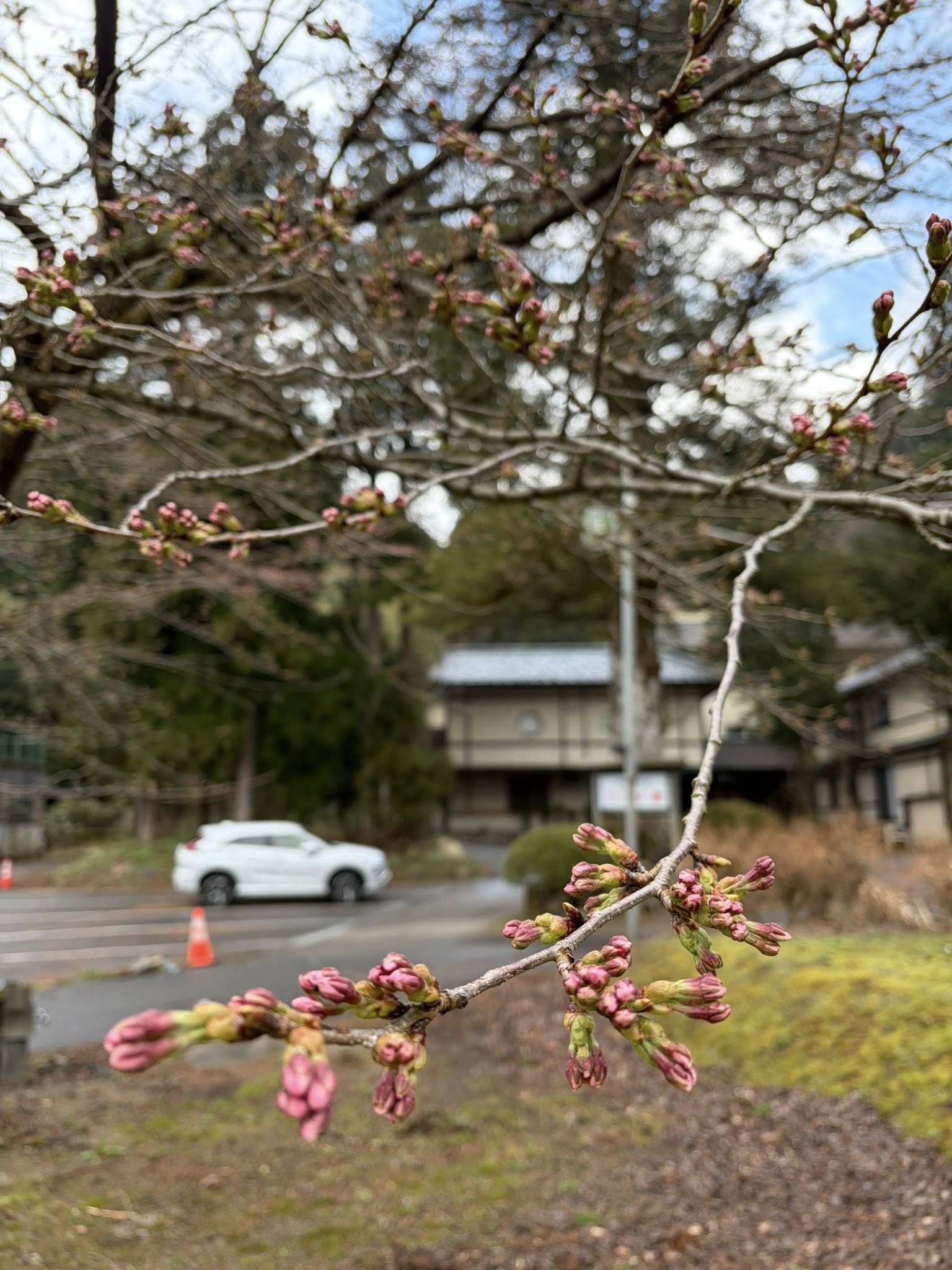 湯本舘の目の前は桜の木が沢山あるのですが、その桜、もうこんなにぷくぷくになって、先がもう割れています。今にも開きそう!こんなに早いのは初めてなんじゃないでしょうか…?