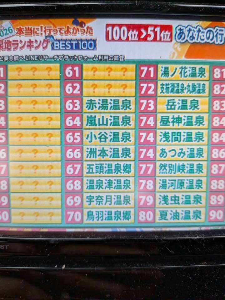 実はこの番組、新潟では放送されないテレビ東京の番組で、2月に放送されて、なんと全国一位がお隣【月岡温泉】だったというのが話題になった番組。