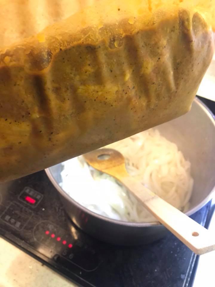 最初の試作カレーは大根と豚肉で仕込んでみました。