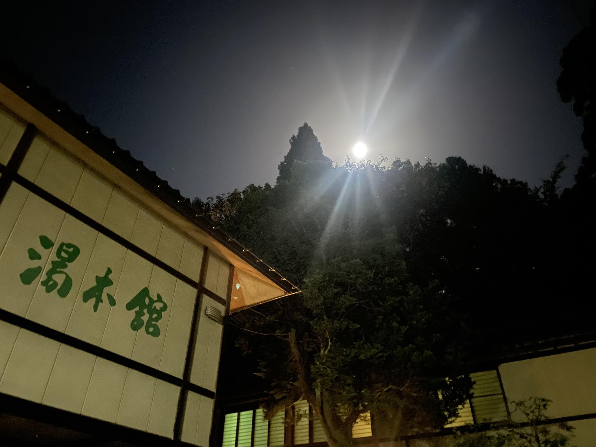 湯本舘は山に近いので(というか山の中か)けっこう高いところまでお月さまがあがらないと見えないんです。けどおかげで、雲が晴れてすごくキレイに見えました。やっぱり中秋の名月の輝きは格別ですね~