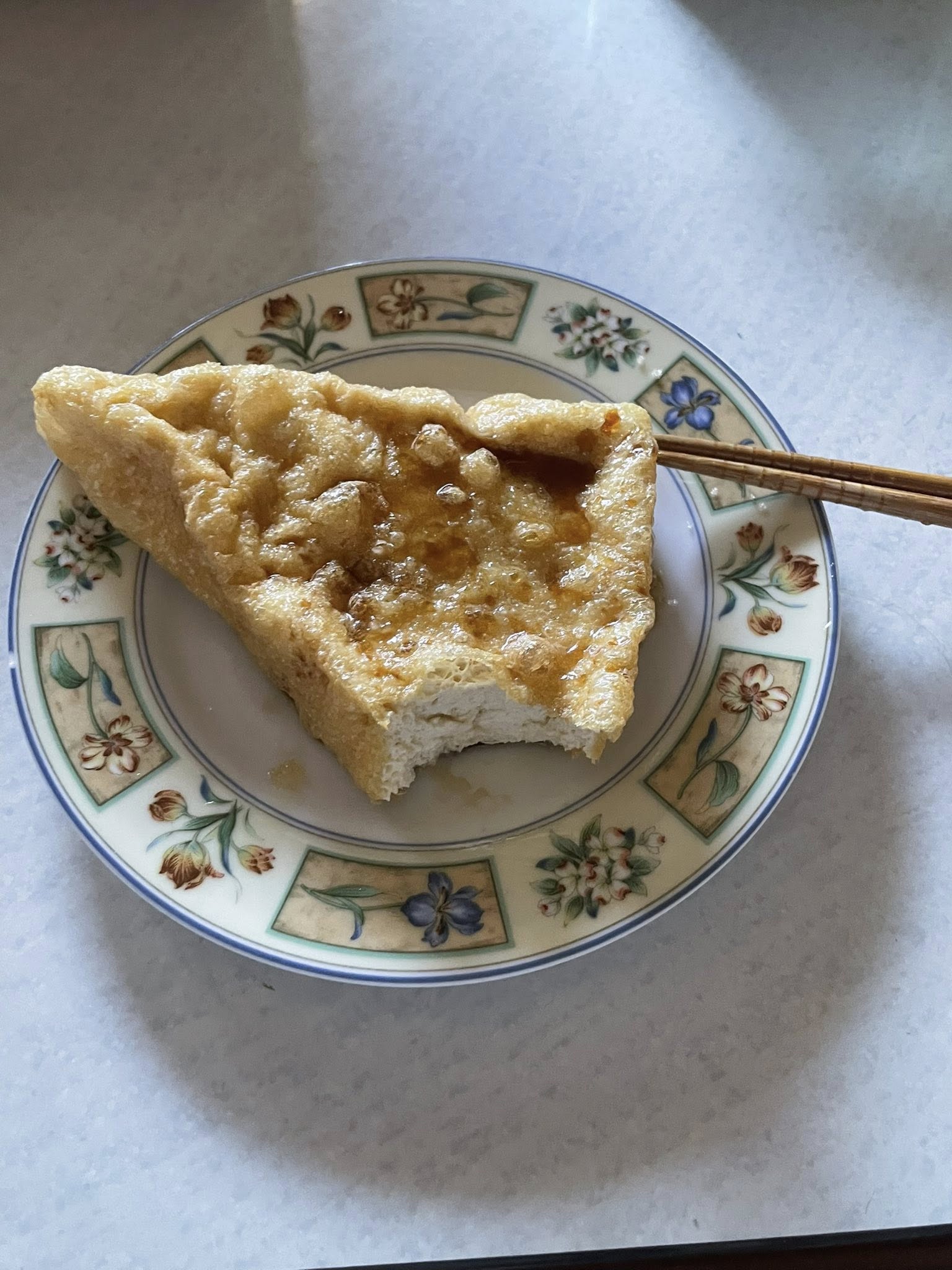 薄揚げも、そのままでも美味しいけど、やっぱりトースターでカリっと焼いたサクサクのものにさっと醤油をかけてっていうのが好き。